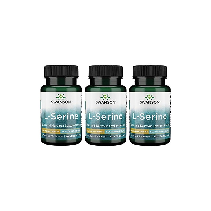 Swanson Ajipure L-Serine - Amino Acid Supplement Supporting Brain Health & Nervous System Function - Natural Formula Promoting Cognitive Function - (60 Veggie Capsules, 500mg Each) 3 Pack