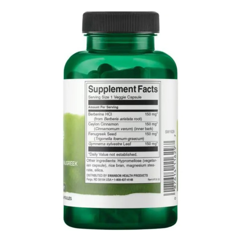 Swanson Berberine Complex Canela, Gymnema 90 Cápsulas Sabor Sin Sabor