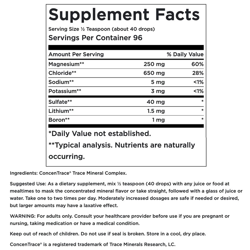 - IT'S TIME TO RENATURE: Add our Concentrace mineral drops to water, food, or smoothies to make it more alkaline, helping your body achieve pH balance. When your body has the minerals it needs, you may notice you have increased energy, less food & sugar cravings, fewer muscle cramps, joint relief, a more positive mood, and feel calm.