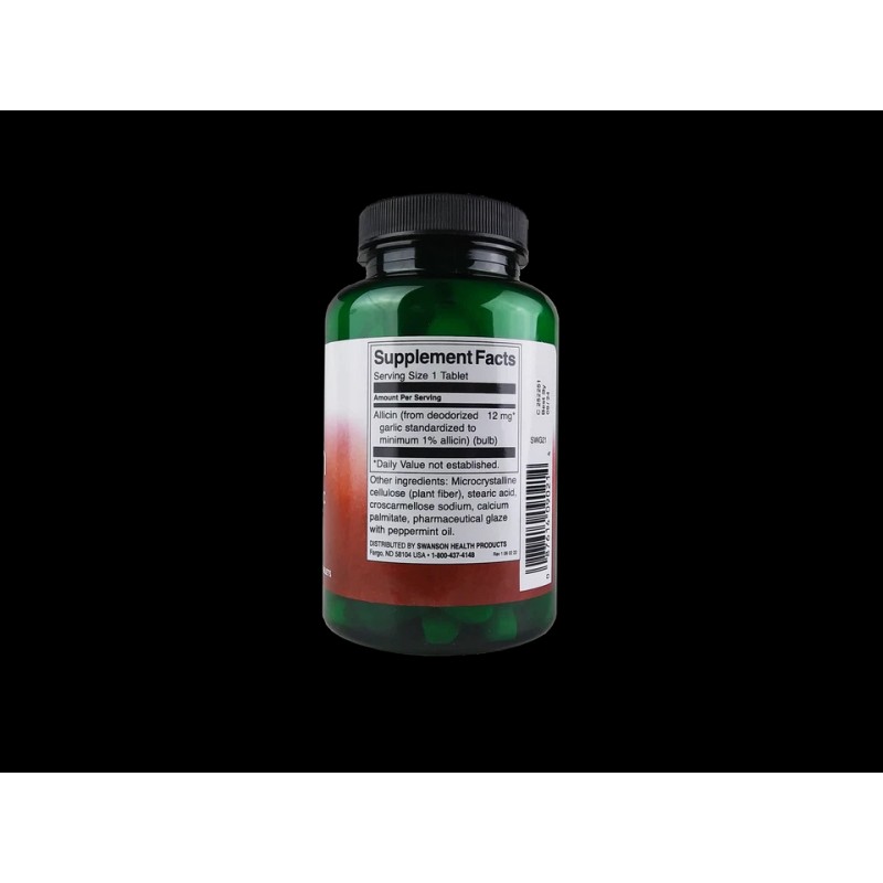 Swanson Maximum‑Strength 100% Pure Allicin 12 mg – 100 Odor-Controlled Tablets – Heart, Blood Lipid & Circulation Support – Made in USA