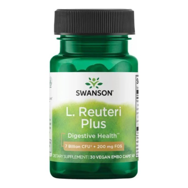 - Resistente al ácido y no necesita refrigeración. Proteja su tracto gastrointestinal de pies a cabeza con el poder probiótico de Swanson Probiotics L. Reuteri Plus. Identificado por primera vez en la década de 1960 por Gerhard Reuter, el microbiólogo alemán que posteriormente tomaría su nombre, Lactobacillus reuteri es una de las bacterias intestinales probióticas naturales más prevalentes en el reino animal, desempeñando un valioso papel protector en muchas especies de mamíferos y aves. En humanos, se ha descubierto que L. reuteri ofrece beneficios protectores para todo el tracto digestivo, desde la boca hasta el estómago y el colon. Cada cápsula de nuestro L. Reuteri Plus contiene la impresionante cantidad de 5 mil millones de estos defensores microscópicos, junto con un generoso aporte de otras dos bacterias intestinales beneficiosas —L. rhamnosus y L. acidophilus— para brindarte un apoyo probiótico equilibrado y de amplio espectro que ningún suplemento de una sola cepa puede igualar. Para nutrir los organismos y ayudarlos a prosperar, L. Reuteri Plus también incluye 200 mg de FOS (fructooligosacáridos), una fibra prebiótica que constituye una fuente de alimento ideal para las bacterias beneficiosas del tracto intestinal. Para garantizar que los organismos probióticos lleguen de forma segura al tracto gastrointestinal inferior y obtengan el máximo beneficio, nuestro L. Reuteri Plus contiene cápsulas veganas que protegen su contenido de la degradación por los ácidos estomacales. Con un total de 7 mil millones de organismos viables de tres cepas probadas, nutridos con FOS prebióticos, L. Reuteri Plus ofrece una protección excepcional para todo el tracto gastrointestinal. Estas declaraciones no han sido evaluadas por la Administración de Alimentos y Medicamentos (FDA). Este producto no está destinado a diagnosticar, tratar, curar ni prevenir ninguna enfermedad. Otros ingredientes: Cápsula vegana (hipromelosa) (EMBO Caps® AP), celulosa microcristalina (fibra vegetal), estearato de magnesio, sílice. Uso sugerido: Como suplemento dietario, tomar una cápsula vegana al día con agua. ADVERTENCIA: Solo para adultos. Consulte a su profesional de la salud antes de usar este o cualquier producto si está embarazada o en período de lactancia, tomando algún medicamento o padece alguna afección médica. Mantener fuera del alcance de los niños. No usar si el sello está roto. Conservar en un lugar fresco y seco. EMBO Caps® AP y el logotipo son marcas comerciales registradas de Suheung Co. LLC. Aviso legal