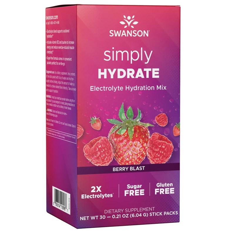 Swanson Simply Hydrate Electrolyte Mix - Sugar-Free Berry Blast Flavor - 30 Packets | Advanced Electrolyte Blend | Convenient On-The-Go Solution