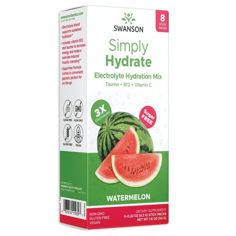 SWANSON Simply Hydrate Electrolyte Mix - Sugar-Free Watermelon Flavor - 8 Packets | Advanced Electrolyte Blend | Convenient On-The-Go Solution