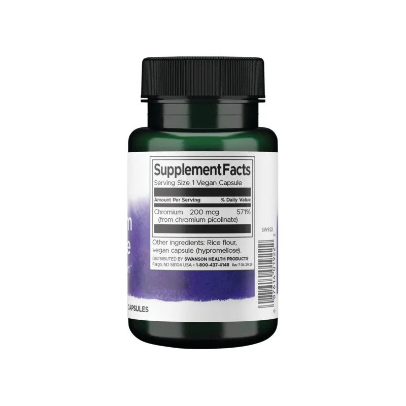 Swanson Suplemento De Picolinato De Cromo 200 Mg, 100 Cáp Sabor Sin sabor