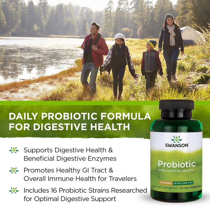 Swanson Swanson Probiotic for Digestive Health GI Tract Immune Support Travelers Support 20 Billion CFU with Prebiotic FOS 60 Veggie Capsules (3 Pack)