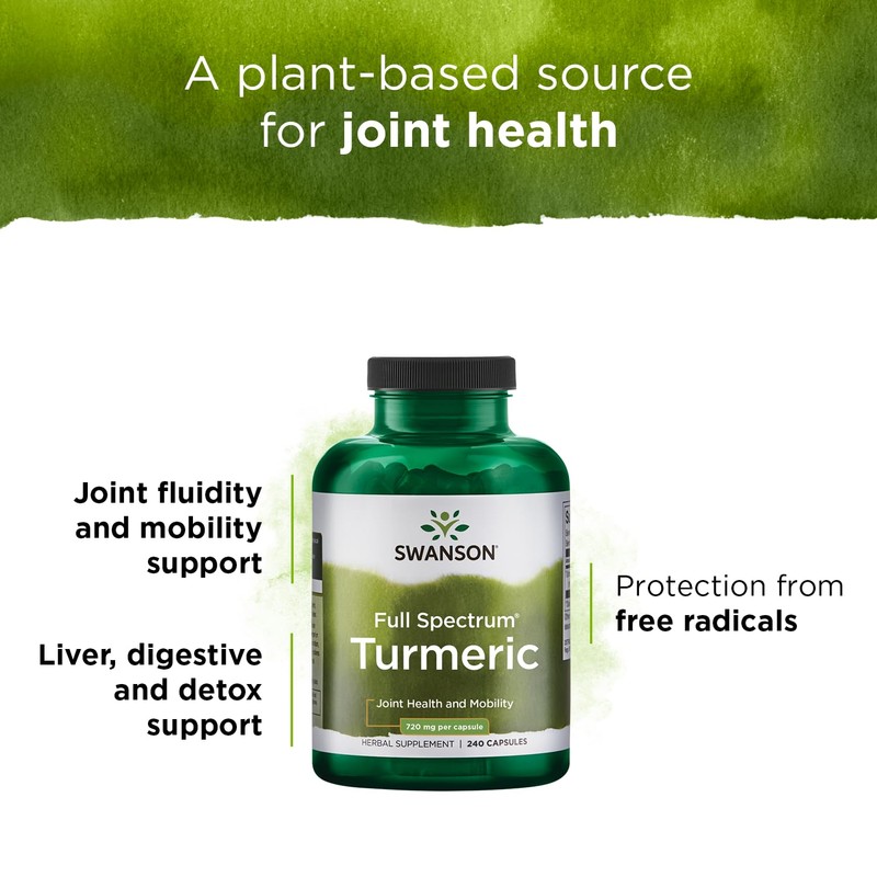 Swanson Swanson Turmeric Antioxidant, Joint Health, Cardiovascular, Liver Detox, Mood and Memory Support Supplement Curcuma Longa (Rhizome) 720 mg, 240 Capsules, 120 Servings, 1.44 Grams per Serving