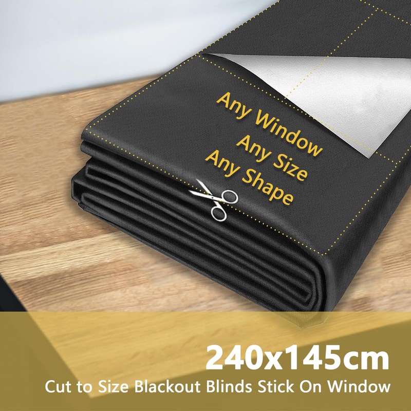SwartLife Portable Blackout Blind with Suction Cups | 240x145cm Cut to Size Blackout Blinds Stick On Window | Temporary Blackout Blinds Meeting Baby Standards for Sensitive Sleep Environments
