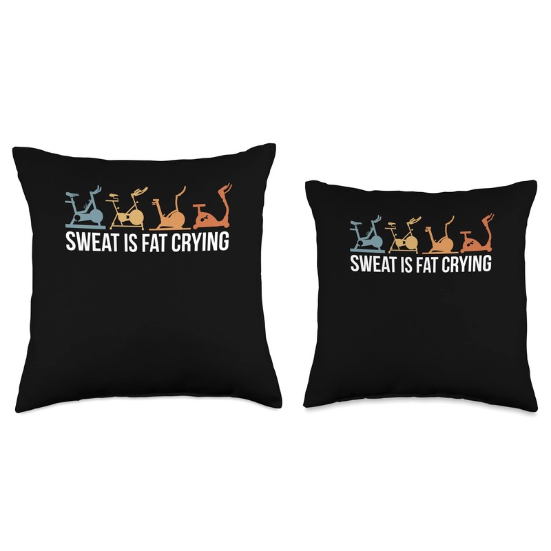 Sweat Is Fat Crying Spin Cycle Bike Throw Pillow