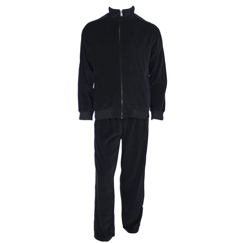 We make comfortable velour tracksuits for men. We use fine cotton and blend it with polyester for a soft comfortable sweatsuit. You can exercise in one of jogging suits but they are best for lounging and hitting the town.