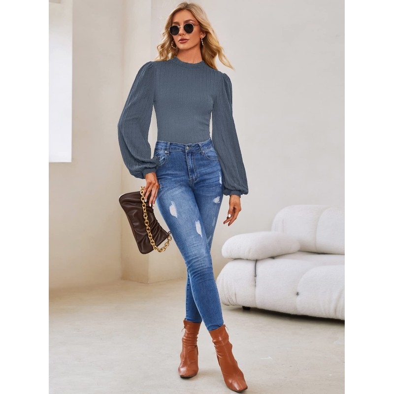 - Diseño único: cuello alto, diseño bodycon que te hace más encantadora y sexy, manga larga de linterna, tops casuales para mujer