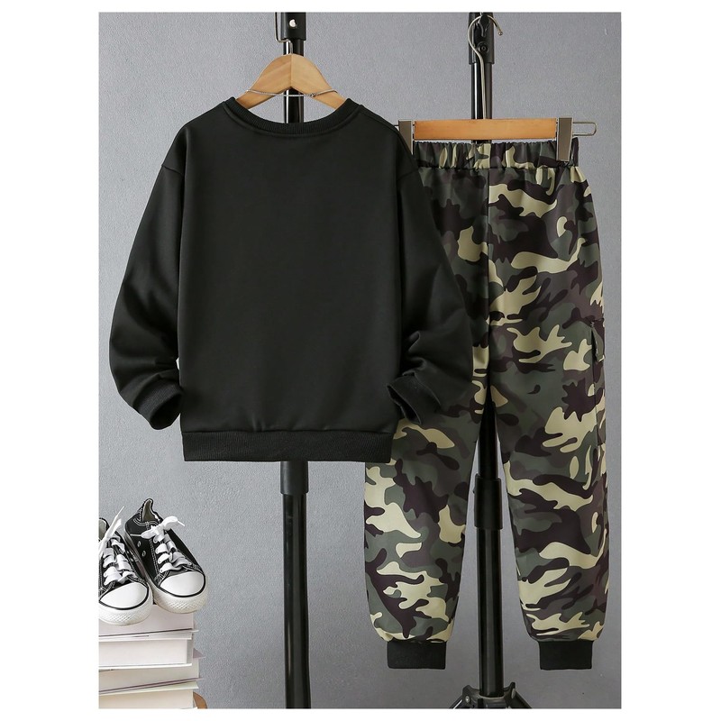 SweatyRocks Boy's Clothing Sets Camo Print Crewneck Sweatshirt and Elastic Waist Sweatpants 2 Piece Outfits Army Green 12Y