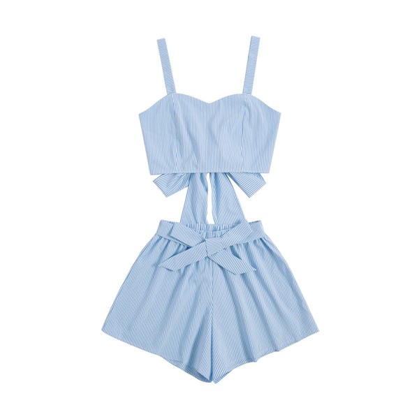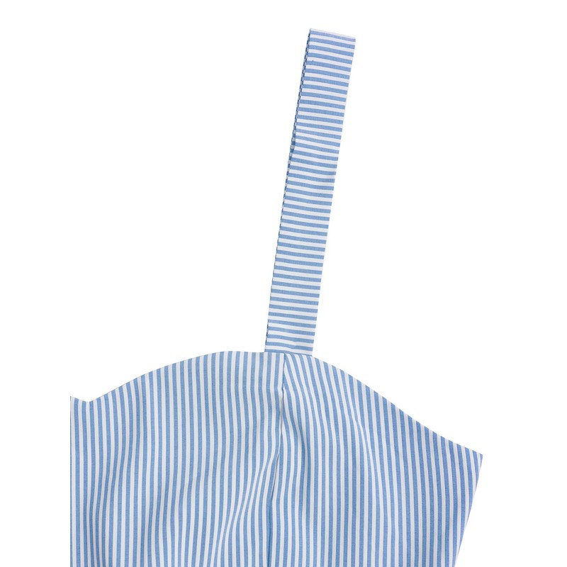 - Características: a rayas, sin mangas, con lazo en la espalda, pantalones cortos con nudo.
