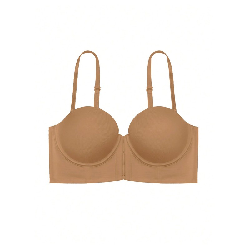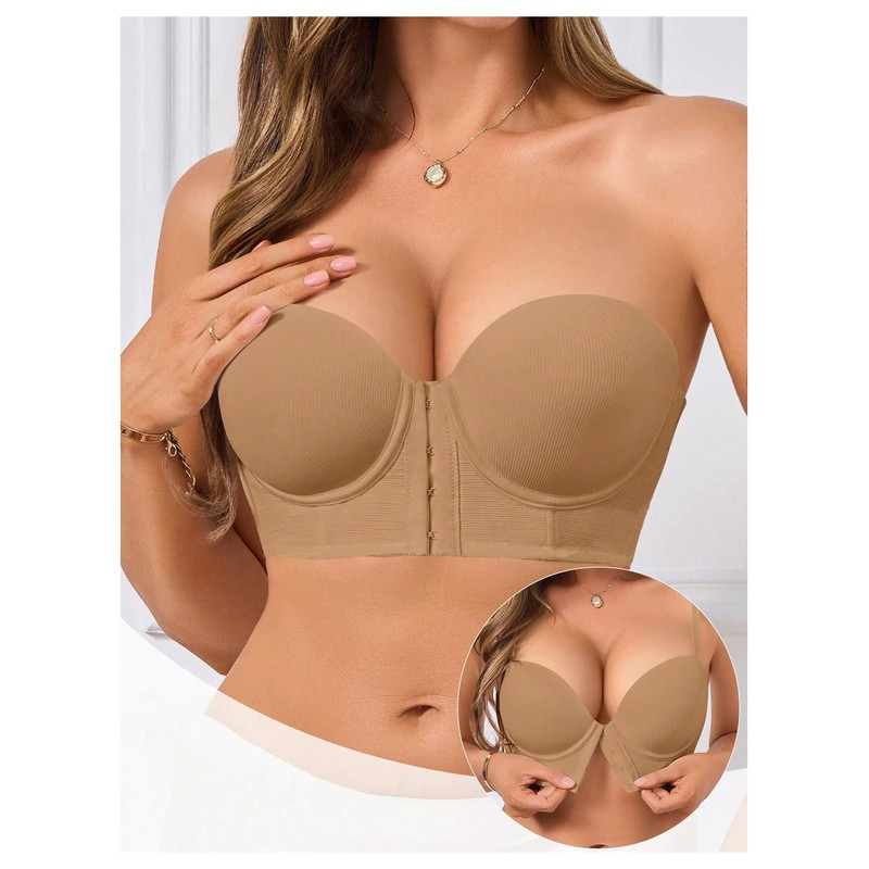 SweatyRocks Women's Front Closure Bandeau Bra Strapless Push Up Underwire Bras Khaki 38D