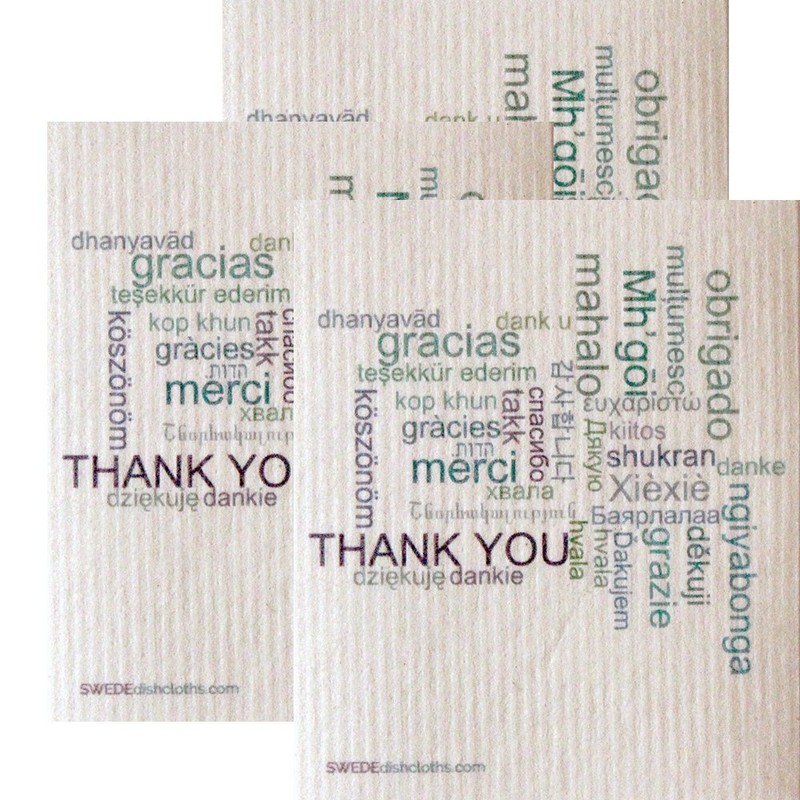SWEDEdishcloths Swedish Dishcloth Set of 3 Each Swedish Dishcloths Thank You Design | Eco Friendly Cleaning Absorbent Cloth Eco Friendly Cleaning Wipes