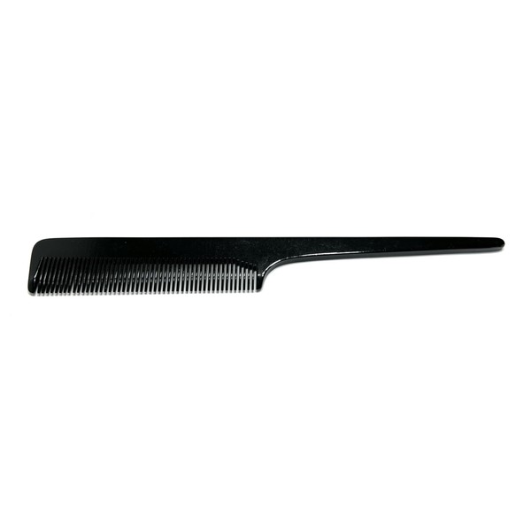 Swedish Crown Stem Comb Curl Comb 20 cm Handmade Sawn Cellulose Acetate Black Uniform Normal Teeth for Detangling (601 CA)