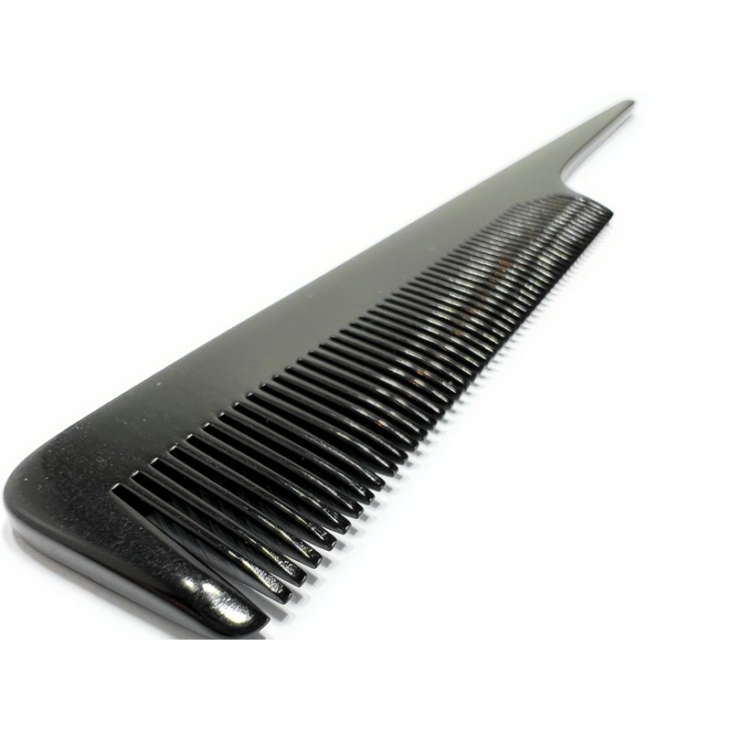 Swedish Crown Stem Comb Curl Comb 20 cm Handmade Sawn Cellulose Acetate Black Uniform Normal Teeth for Detangling (601 CA)