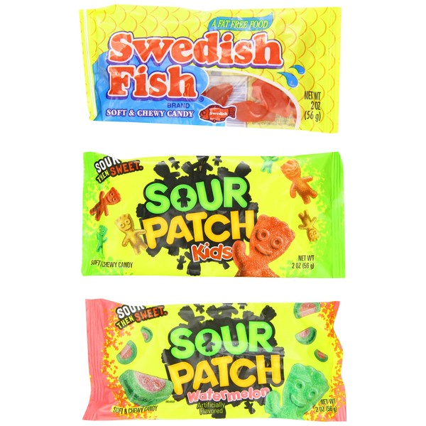 Swedish Fish, Sour Patch Kids and Watermelon Sour Patch Kids, 18 Count