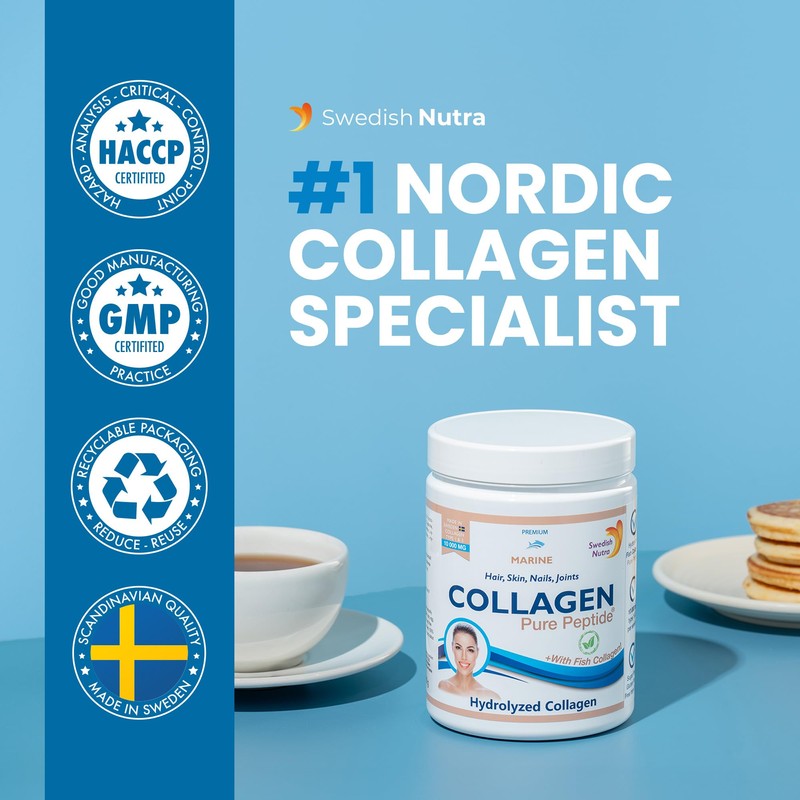 Swedish Nutra Swedish Nutra - Hydrolyzed Marine Collagen 10,000 mg Powder Supplement - Pack of 300 g, 30 Day Supply | Pure Peptide for Healthy Hair, Skin, Nails and Joints I 100% Natural and Gluten Free