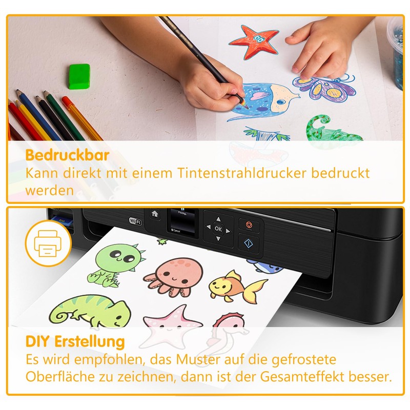 • Printable and paintable. Matte transparent shrink film, 25 sheets, A4 craft film: 210 x 297 mm.