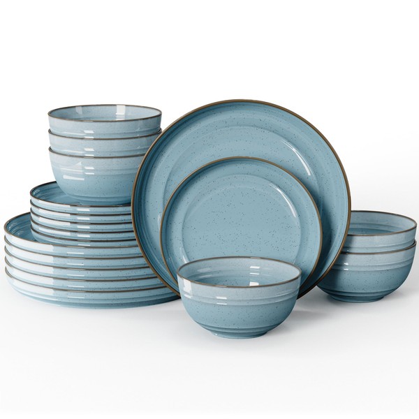 - GIFT-WORTHY DESIGN FOR ANY OCCASION: Elevate any occasion with this stunning dinnerware set—perfect for daily meals or festive gatherings. The handcrafted gradient blue glaze, natural speckles, and raised swirl texture exude artisan charm and timeless elegance. A thoughtful gift for weddings, housewarmings, Thanksgiving, or Christmas, this kitchen dish set turns every meal into a memorable celebration and every table into a work of art.