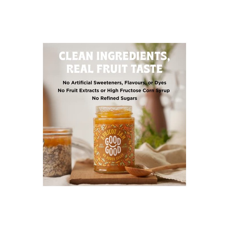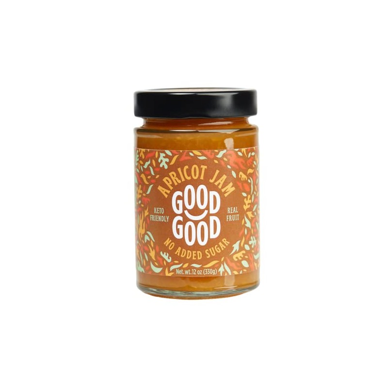 Sweet Apricot Jam by Good Good - 12 oz / 330 g - No Added Sugar Apricot Jam - Vegan - Gluten Free - Diabetic, Good Good Jam with Stevia