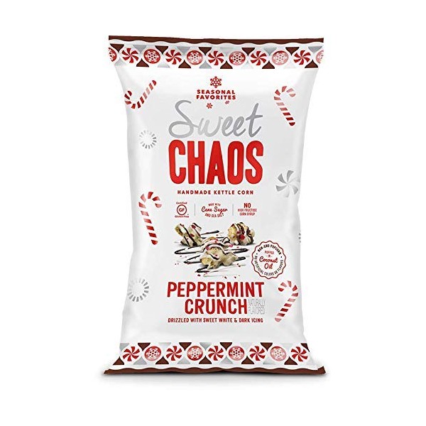 Sweet Chaos Handmade Kettle Corn - Peppermint Crunch Flavor - Holiday Candy - Made with Cane Sugar and Sea Salt - Net Wt. 1.5 oz (Pack of 3)