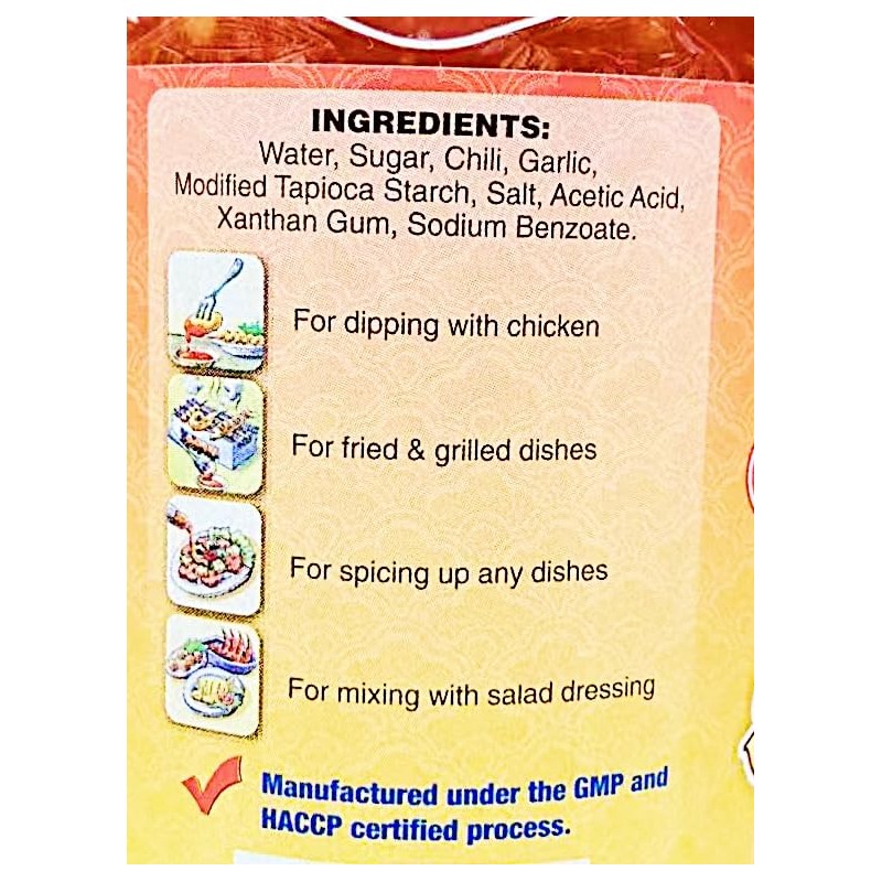 • AUTHENTIC THAI: Sweet chili sauce perfect for spring rolls, dumplings, and other Asian appetizers with a balanced sweet and spicy taste