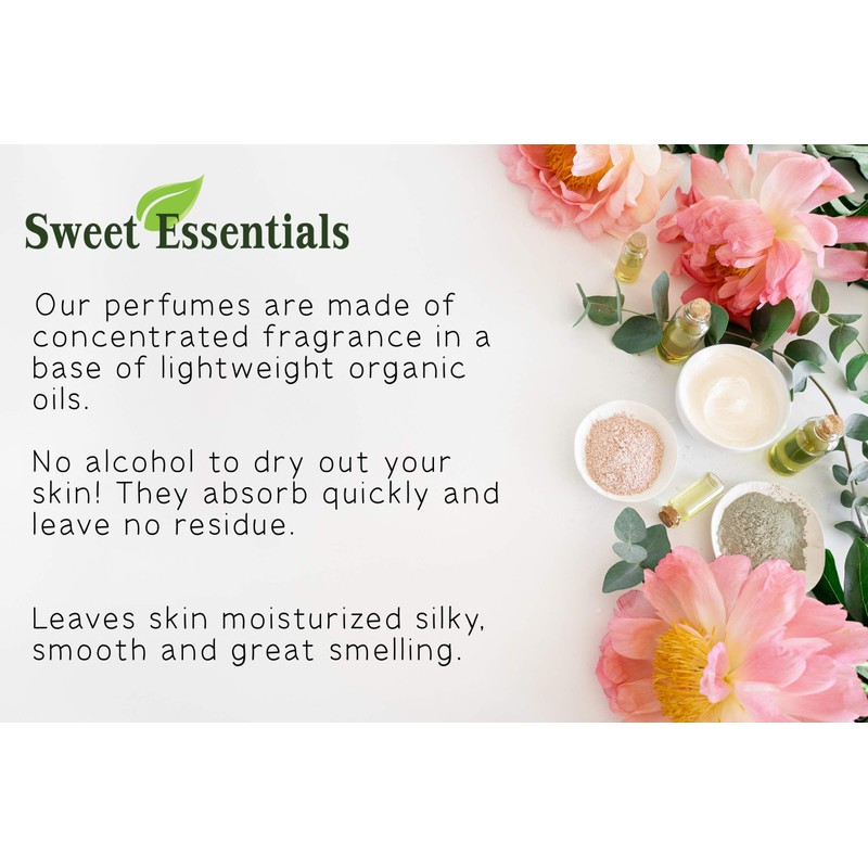 ★ Our perfumes are made of concentrated fragrance in a base of lightweight organic oils. No alcohol to dry out your skin! They absorb quickly and leave no residue.
