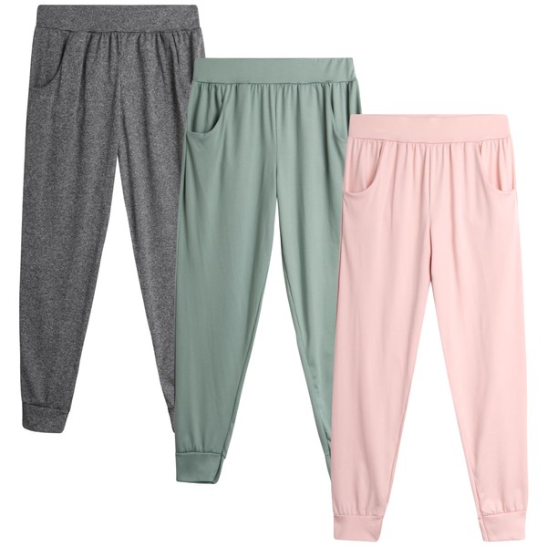 Sweet Hearts Girls' Sweatpants - 3 Pack Performance Jogger Pants with Pockets - High Waisted Jogger Sweatpants: Made in USA , Size 10-12, Charcoal/Blush/Sage