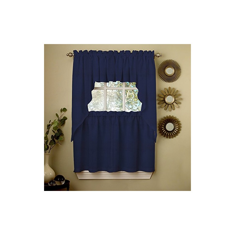 Sweet Home Collection 5 Pc Kitchen Curtain Set-Valance Swag Choice of 24" or 36" Tier Pair, Ribcord Navy