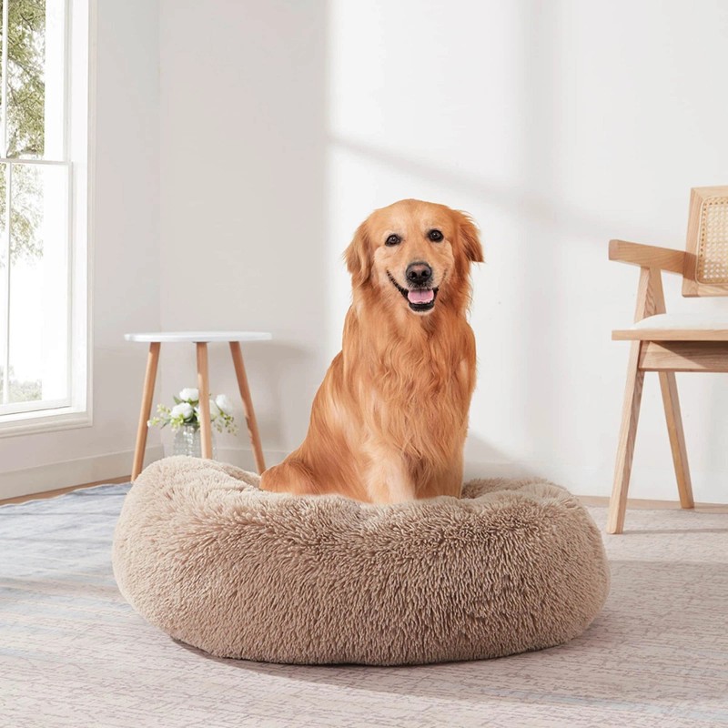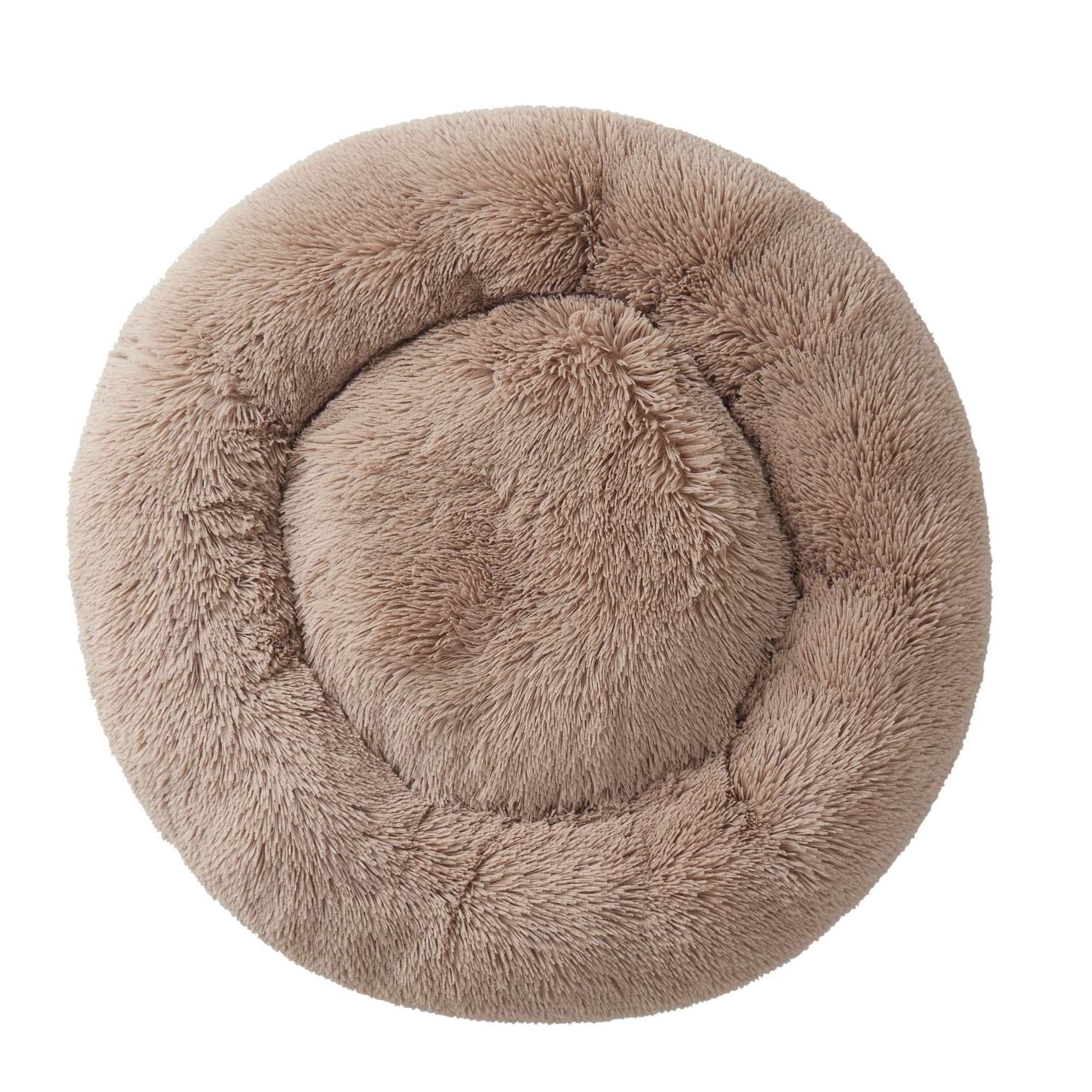 Round Calming Soft Warm Shaggy Plush Faux Fur Donut Pet Dog Cat Sleeping Bed