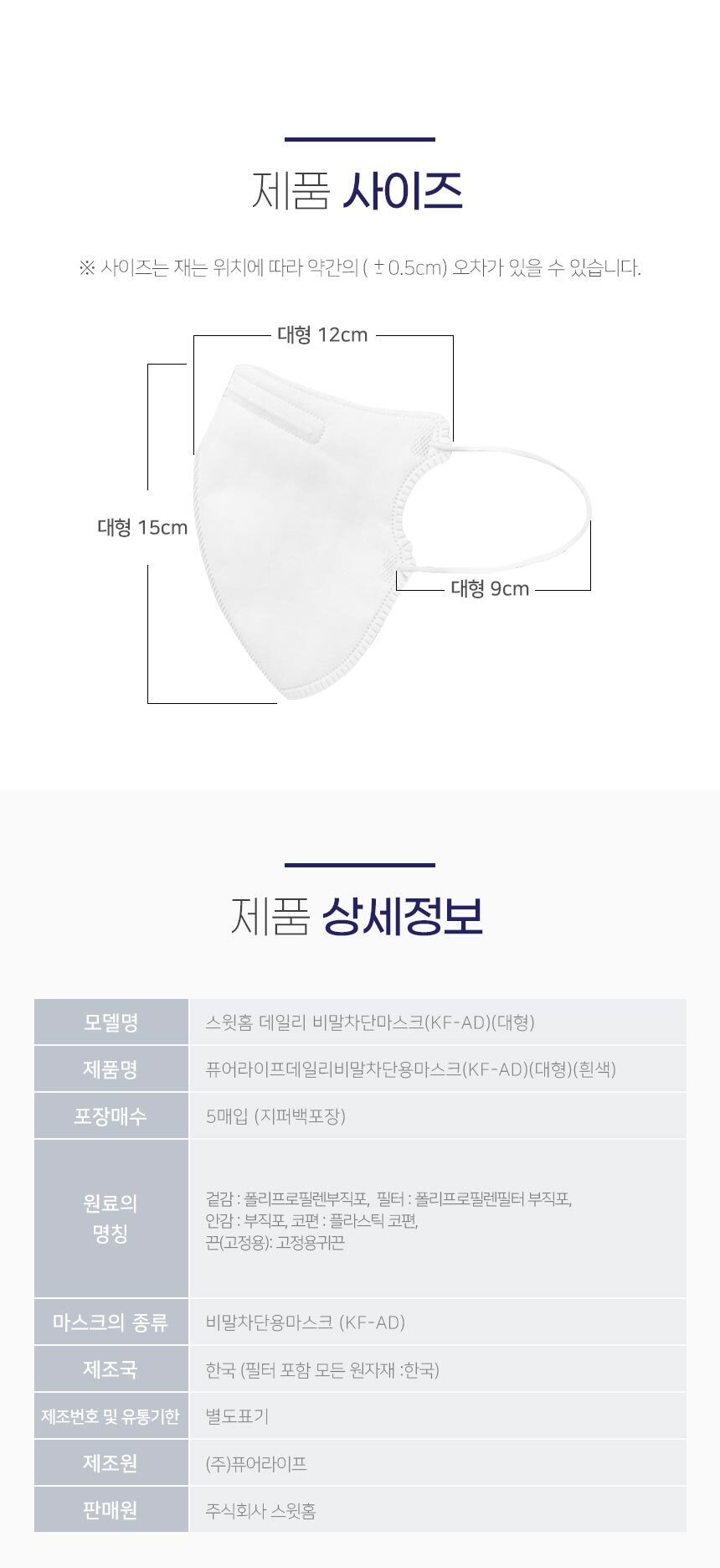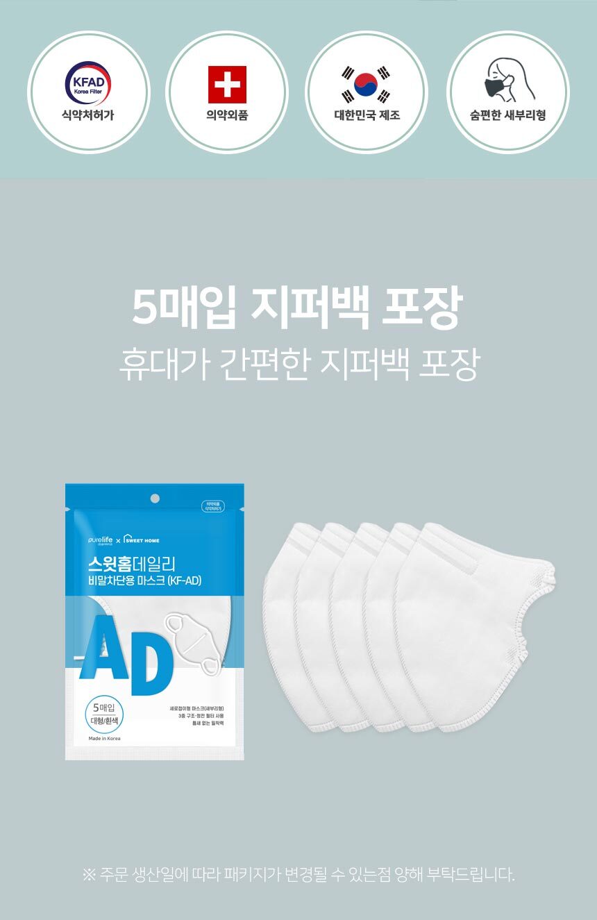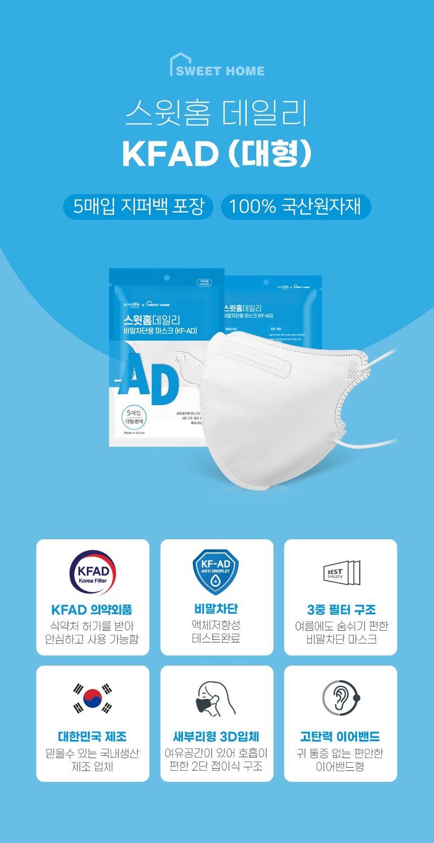 Sweet Home Daily KFAD Bird Beak Type Droplet Blocking Mask Large (5 pieces) 100 sheets / 스윗홈 데일리 KFAD 새부리형 비말차단 마스크 대형 (5매입) 100매