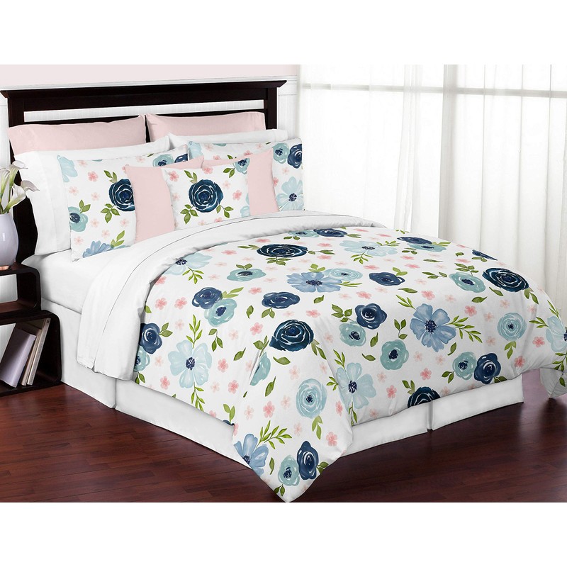 Sweet Jojo Designs Navy Blue and Pink Watercolor Floral Body Pillow Case Cover (Pillow Not Included) - Blush, Green and White Shabby Chic Rose Flower Polka Dot