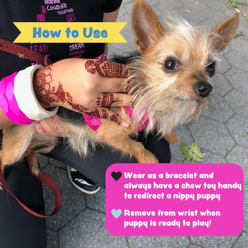 - DOG PUPPY TOY NIPPING SOLUTION: Take playtime on the go with Sweet Paws puppy teething rings! Wear this chew toy for small dogs as a bracelet on hand to redirect your nippy puppy. Simply remove from wrist when puppy is ready to play!