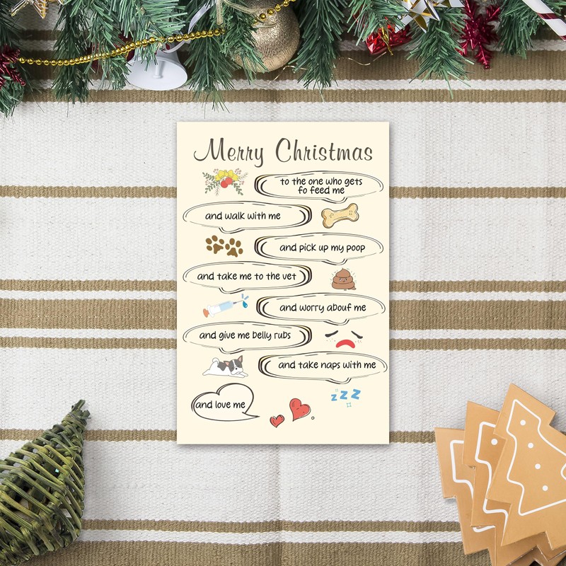 - Spoil your pet with laughter this Christmas! This card says it all - your love and appreciation for their unconditional companionship.