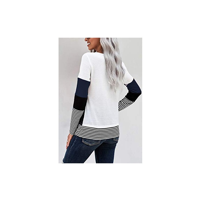 - Feature: Color block striped, Solid color,Leopard print,Chest pocket,Loose, Crew neck,Round hem,Waffle knit long sleeve shirts,Casual, Stretchy,Long tunic tops for women to wear with leggings