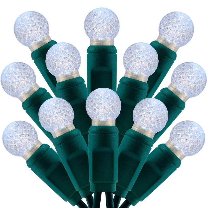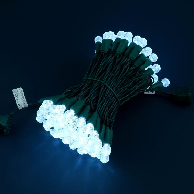 - SPECIFICATIONS ☀ Each pack contains 1 strands of one-piece string lights, total length 33 feet with 100 count cool white G12 raspberry lights. 22 AWG green cord, 4" lead, 4" spacing, 4" tail.