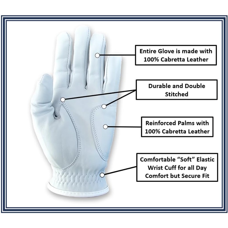 - Superior Quality: Each premium golf glove is hand-cut and hand-stitched with the finest premium Cabretta leather. This golf glove form fits to your hand providing a flexible fit for comfort and performance.