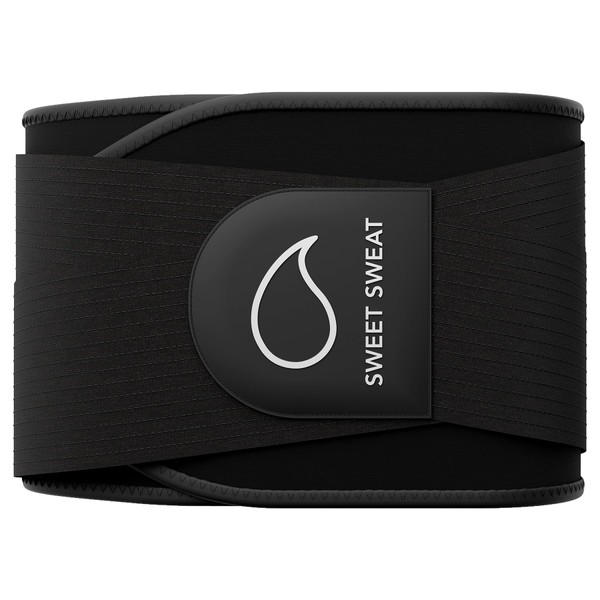 Sports Research Sweet Sweat Waist Trimmer Pro Series - Sweat Enhancing Fitness Belt for Women & Men - Adjustable Straps · Back & Core Support - Black (Med-Lrg)