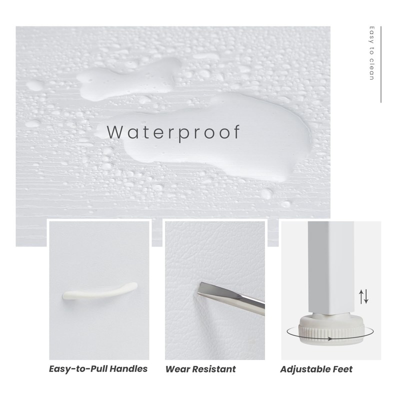 - Sturdy Frame: The high-quality metal frame extends the life of the chest of drawers while keeping the chest of drawers stable and sturdy at all times. With 4 height-adjustable feet to protect your floor from scratches, you can also adjust the balance of the chest of drawers in small areas. In addition, we added auxiliary function that is fixed against the wall. You can attach the drawer dresser to your wall to prevent possible tilting and child climbing caused by terrain.