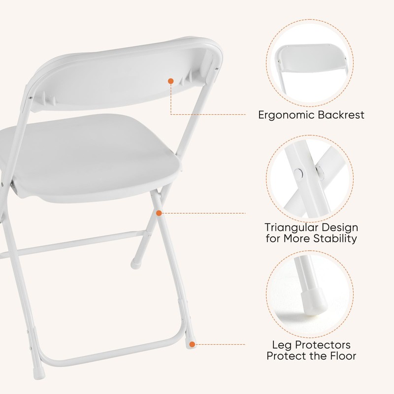 Sweetcrispy Folding Chair 10 Pack, Plastic Foldable Chairs with 330-Pound Capacity, Sturdy Metal Portable Chair, Easy to Use and Store, Outdoor and Indoor, for Home, Office, Party, Comfy, White