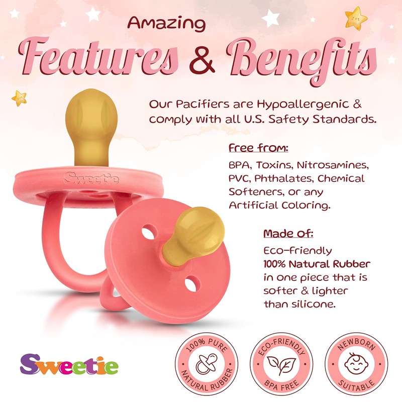 - ✅ 100% pure natural rubber pacifier Soft and natural Rounded nipple