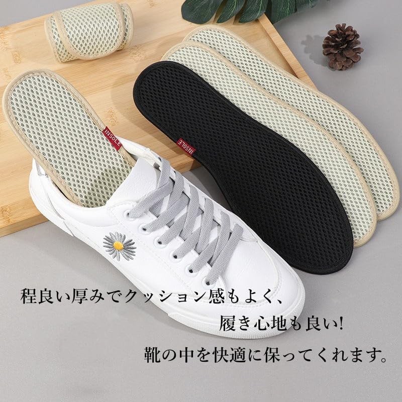 - (Breathable and Durable) The surface fabric is made of mesh-like nylon material that improves breathability, allowing sweat to escape and allows air to be changed, so your feet won't get stuffy and odorless. In addition, the nylon material is highly durable, so it is difficult to deform, and can be used for a long time. It is also washable, so it can be used repeatedly