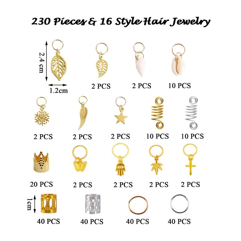 - Total 230 Pieces: there are 16 different shapes include 100 pieces copper hair rings, 80 pieces braid hair rings and 50 pieces pendant charms rings, large quantity for your daily use.