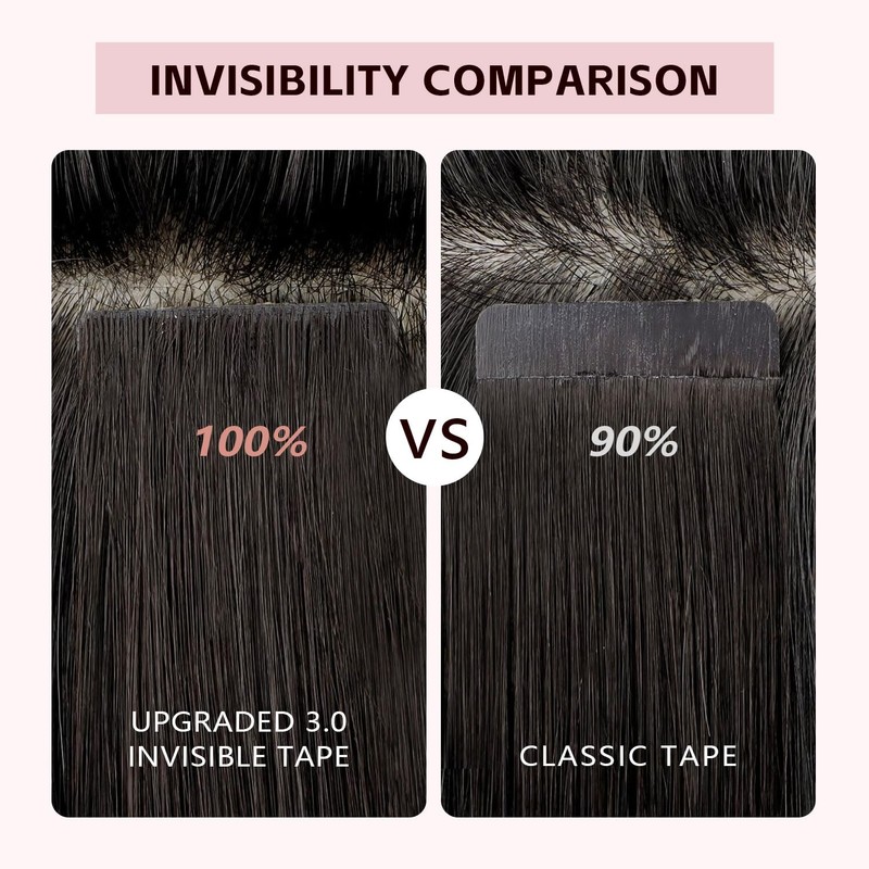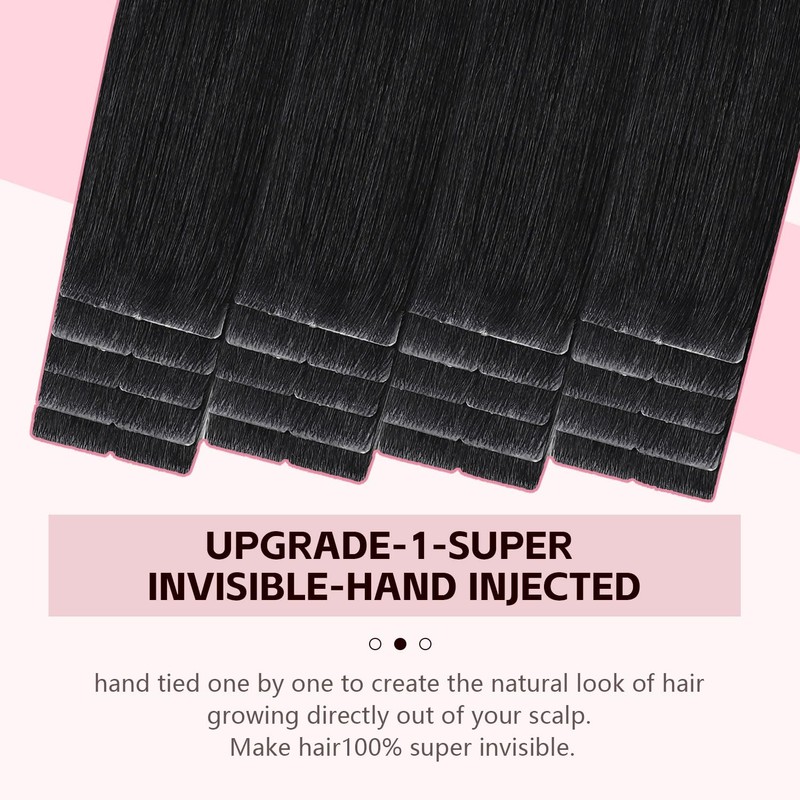 - 【Super Invisible】The 3.0 upgraded version Injection invisible tape in hair extensions are hand tied on to the tape, one by one to create the natural look of hair growing directly out of your scalp. Making them 100% invisible, It is more super invisible than the 1.0 and 2.0 version classic tape hair.