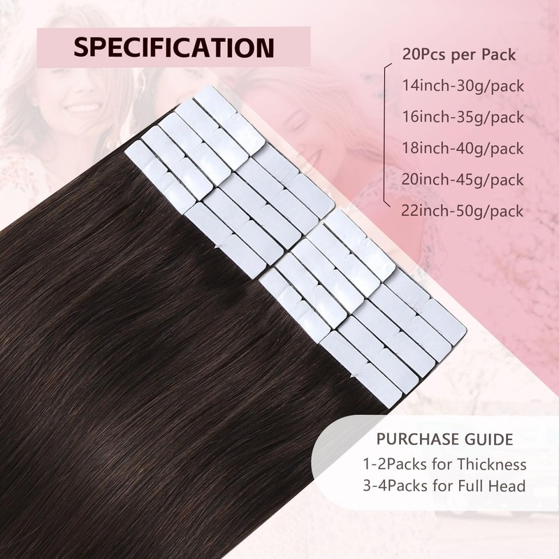 - 【Upgraded Pro Quality Real Human Hair】Sweetmet invisible tape in hair extensions real human hair craft from new upgraded luxury remy human hair. This pro quality hair has greater comfort and longevit, no knots, no dryness, smooth and soft,At least 5 months lifespan with good care.