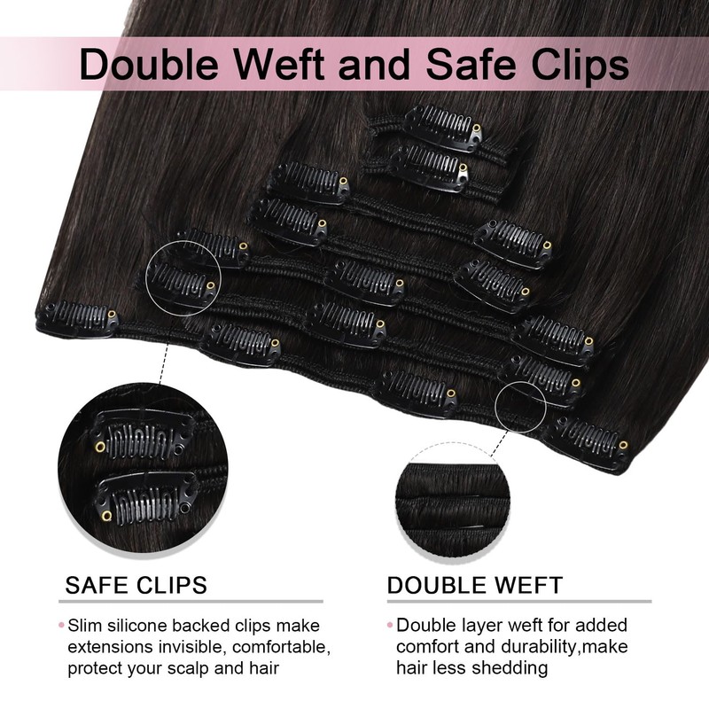 - 【Double Weft and High Quality Clips】 Features a double-layer weft design for added comfort and durability; make the hair less prone to shedding and ensure a secure fit. Slim silicone backed clips make extensions invisible, comfortable, protect your scalp and hair.