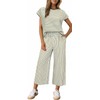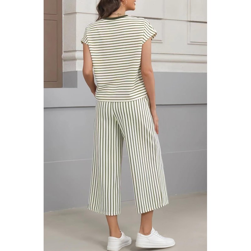 Sweetmoon 2 Piece Sets for Women Summer Outfits Short Sleeve Top Wide Leg Crop Pants Womens Matching Sets for Travel Vacation Green Striped L