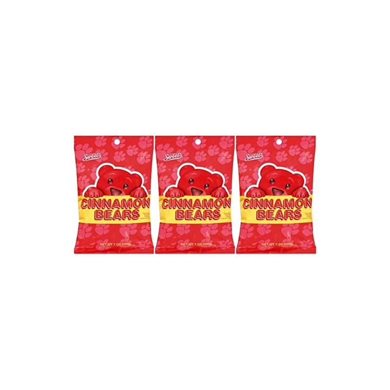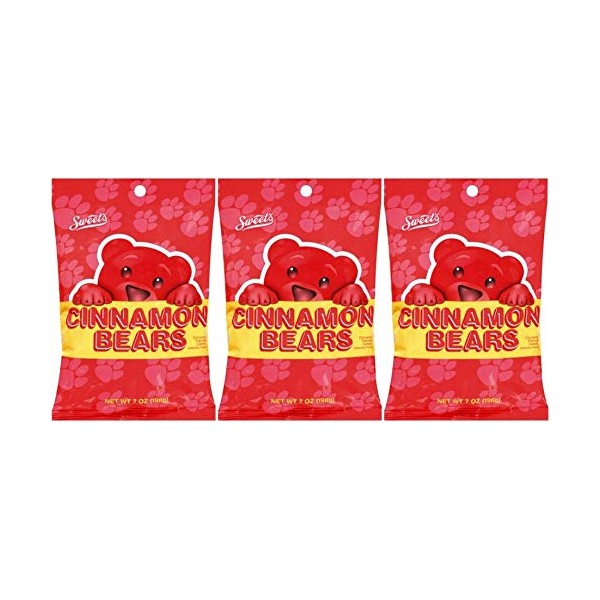 Sweet Candy Company Red Cinnamon Gummy Bears - Hot and Spicy Cinnamon Gummy Candy, Gluten Free Gummies for Kids and Adults, Kosher, Made in the USA - 7 oz Bag (Pack of 3)