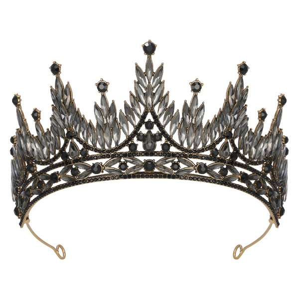 SWEETV Tiaras and Crowns for Women, Wedding Tiara for Bride, Rhinestone Queen Crown, Crystal Costume Hair Accessories for Birthday Prom Quinceanera Celebration (Black 02)